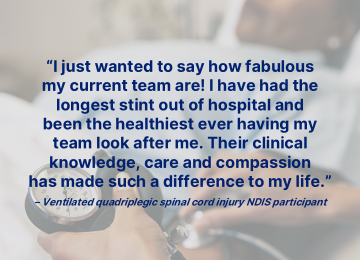 Vitalis provides NDIS nursing services across Greater Sydney, delivering hospital-standard care, outstanding outcomes and a positive participant experience.